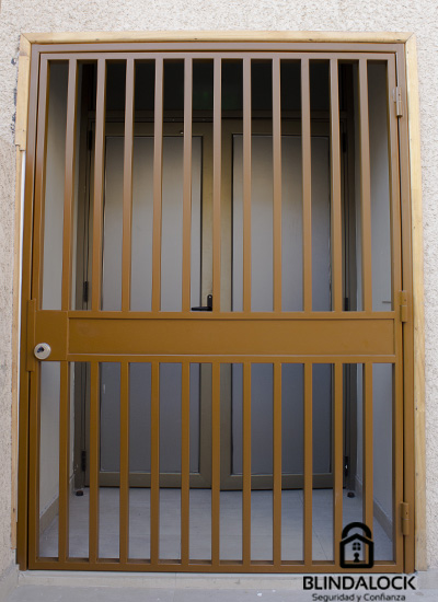 Estas protecciones son fabricadas 100% en perfiles de acero, como mínimo en 2 mm y siempre llevan un cerradura de alta seguridad, generalmente estan estructurados de la siguiente forma: